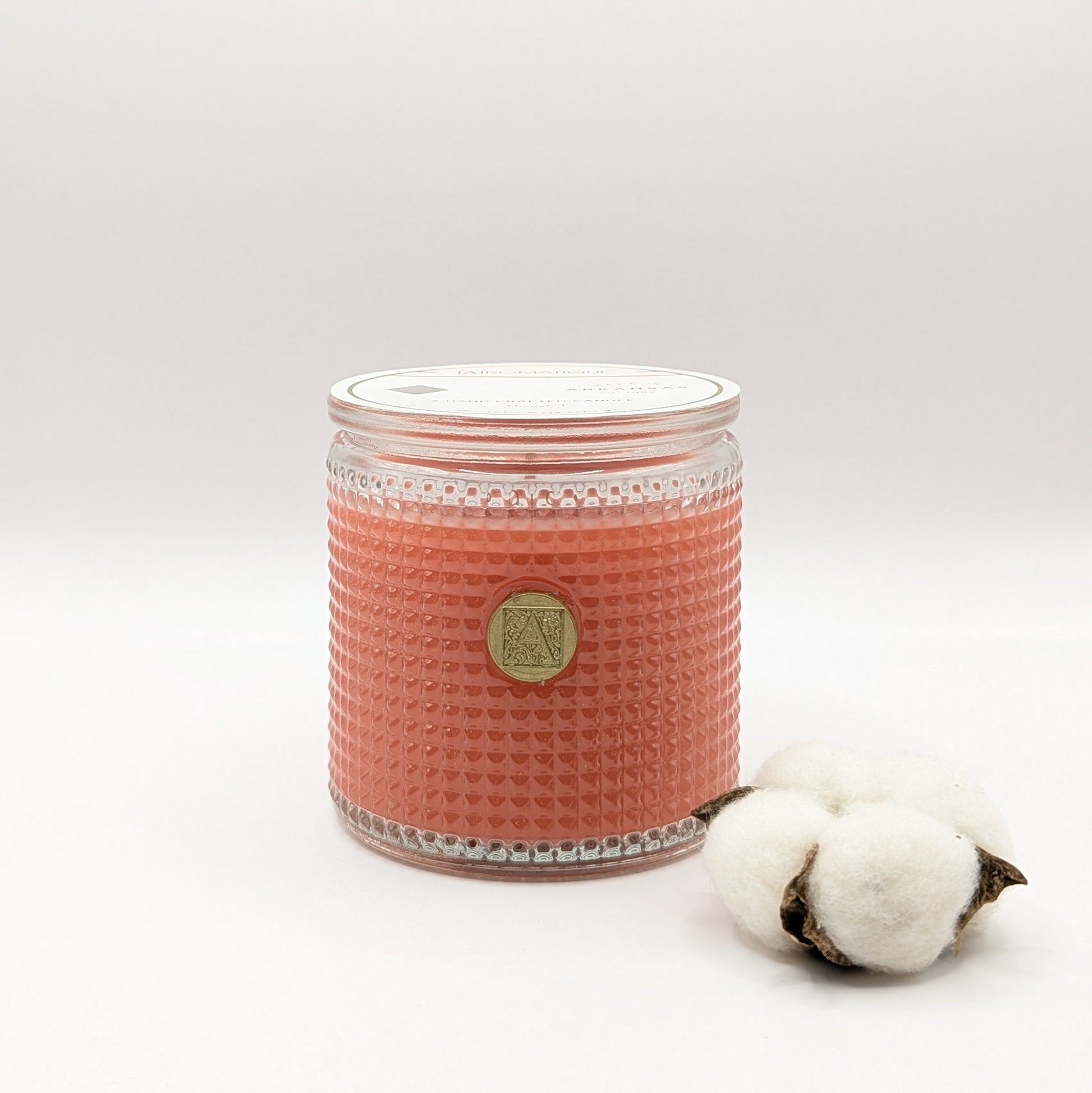 This sweet citrus fragrance is a blend of oroblanco pomelo blended with pomegranate musk, and infused with a hint of clementine blossoms.