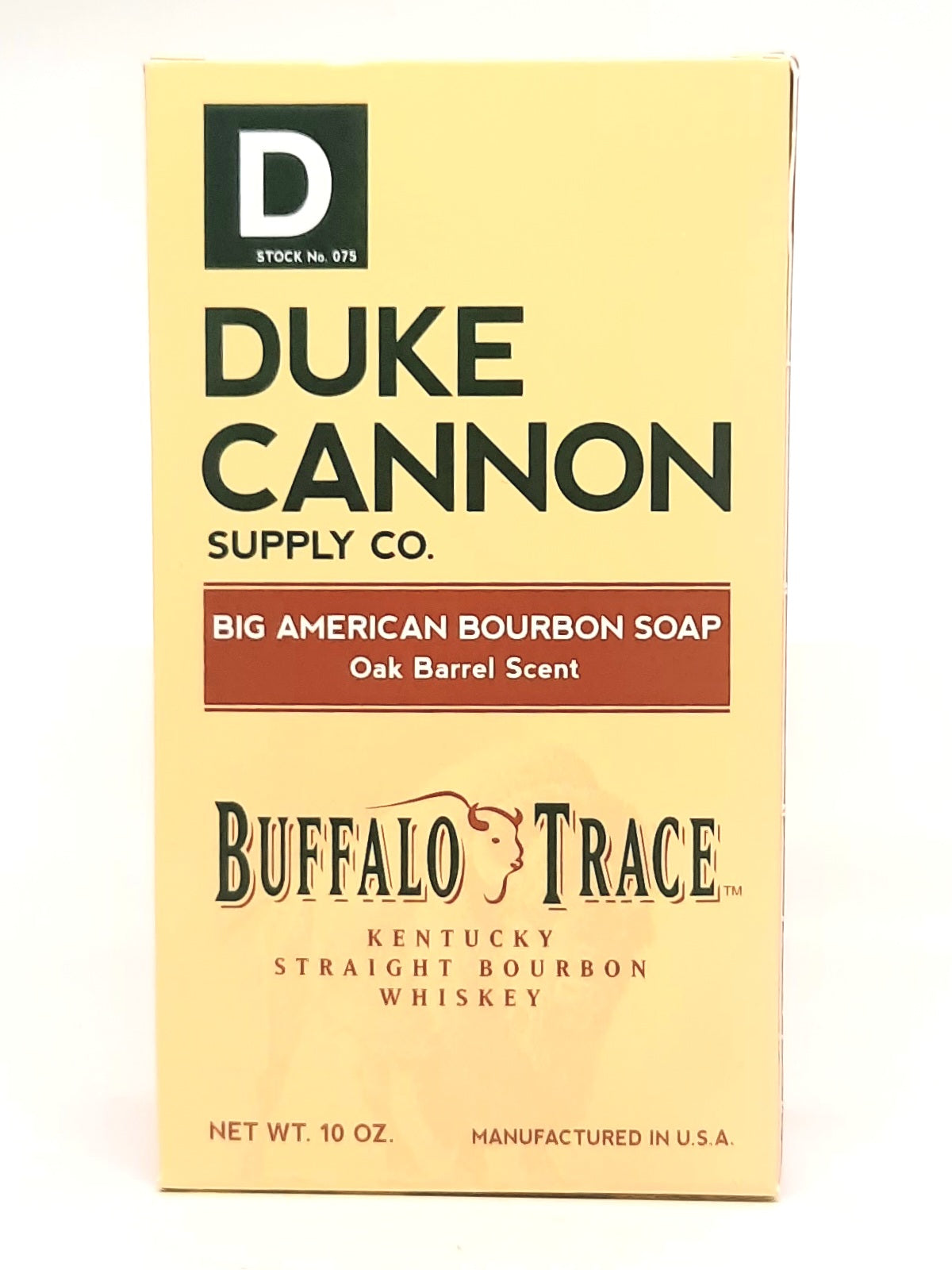 This extra large bar soap has an Oak Barrel Scent and is made with straight bourbon whiskey. 10oz bar.