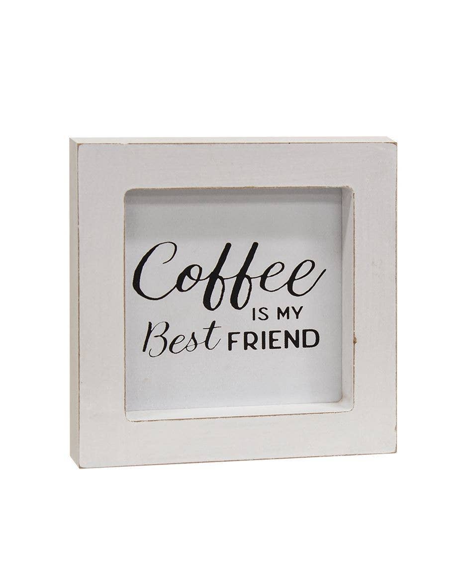 This mini framed sign reads “coffee is my best friend”, and comes with a sawtooth hanger attached to the back of the frame, so it can be hung on the wall or can be displayed freestanding.