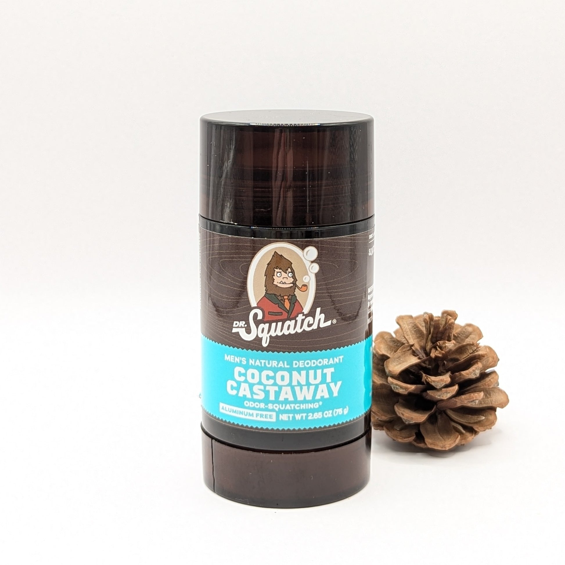 Dr. Squatch's natural Coconut Castaway deodorant is aluminum-free, and utilizes charcoal (for odor protection), arrowroot (for moisture protection), and probiotics (to restore balance). This one smells exotic, tranquil & tropical.
