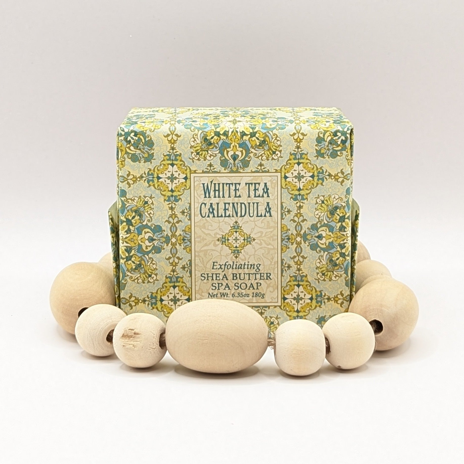 The delicate fragrance of white tea is magnified by the brilliant addition of calendula. Calendula, while it perfectly rounds out the flavor, is good in many other ways than just to smell. It is useful for natural first aid, treating diaper rash and eczema, and has anti-aging properties. What's not to like?