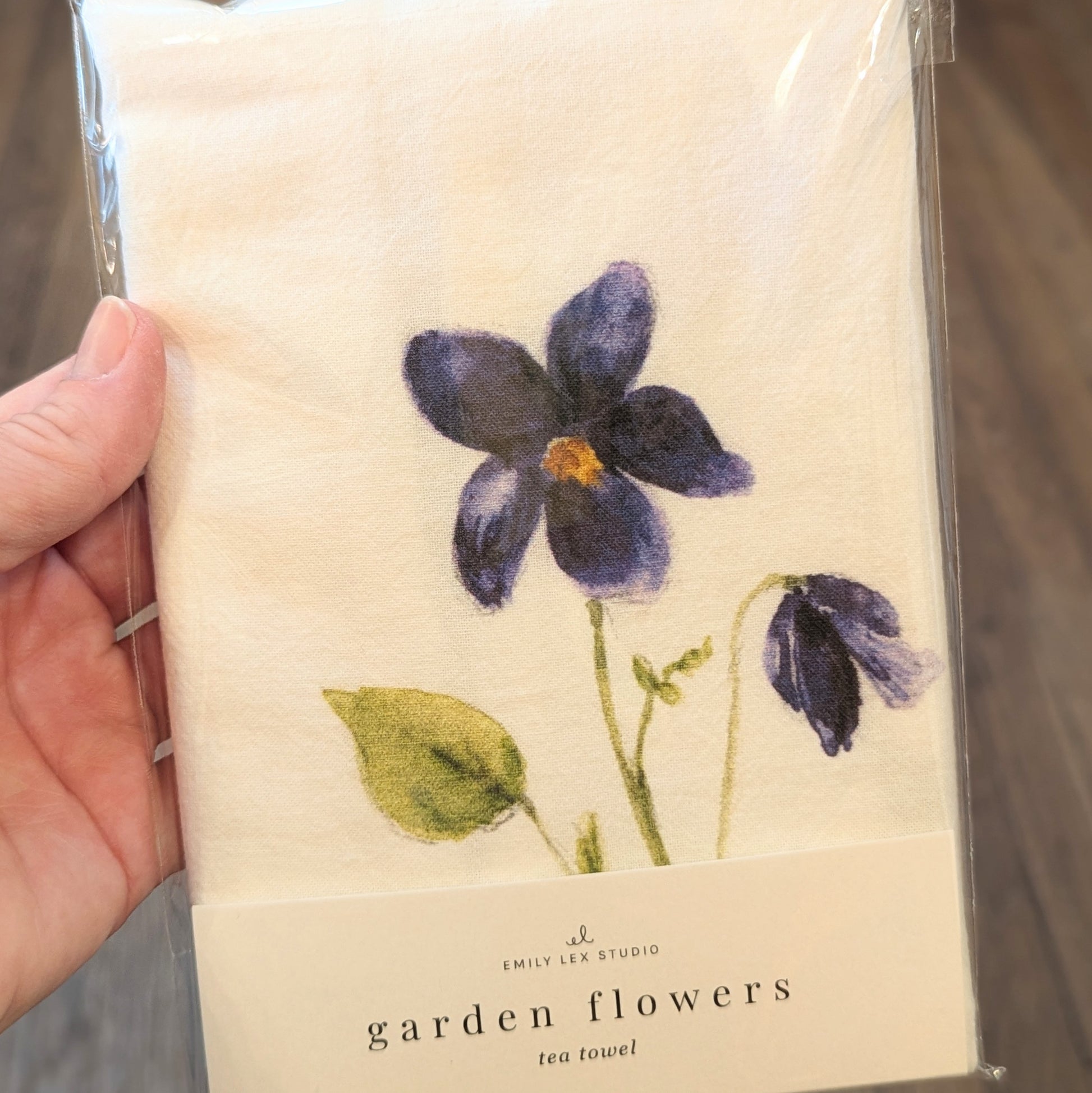Add a touch of delight to your kitchen with this 100% cotton tea towel. Garden flower illustrations cover the towel and make it perfect for washing, lining a basket, or display purposes!