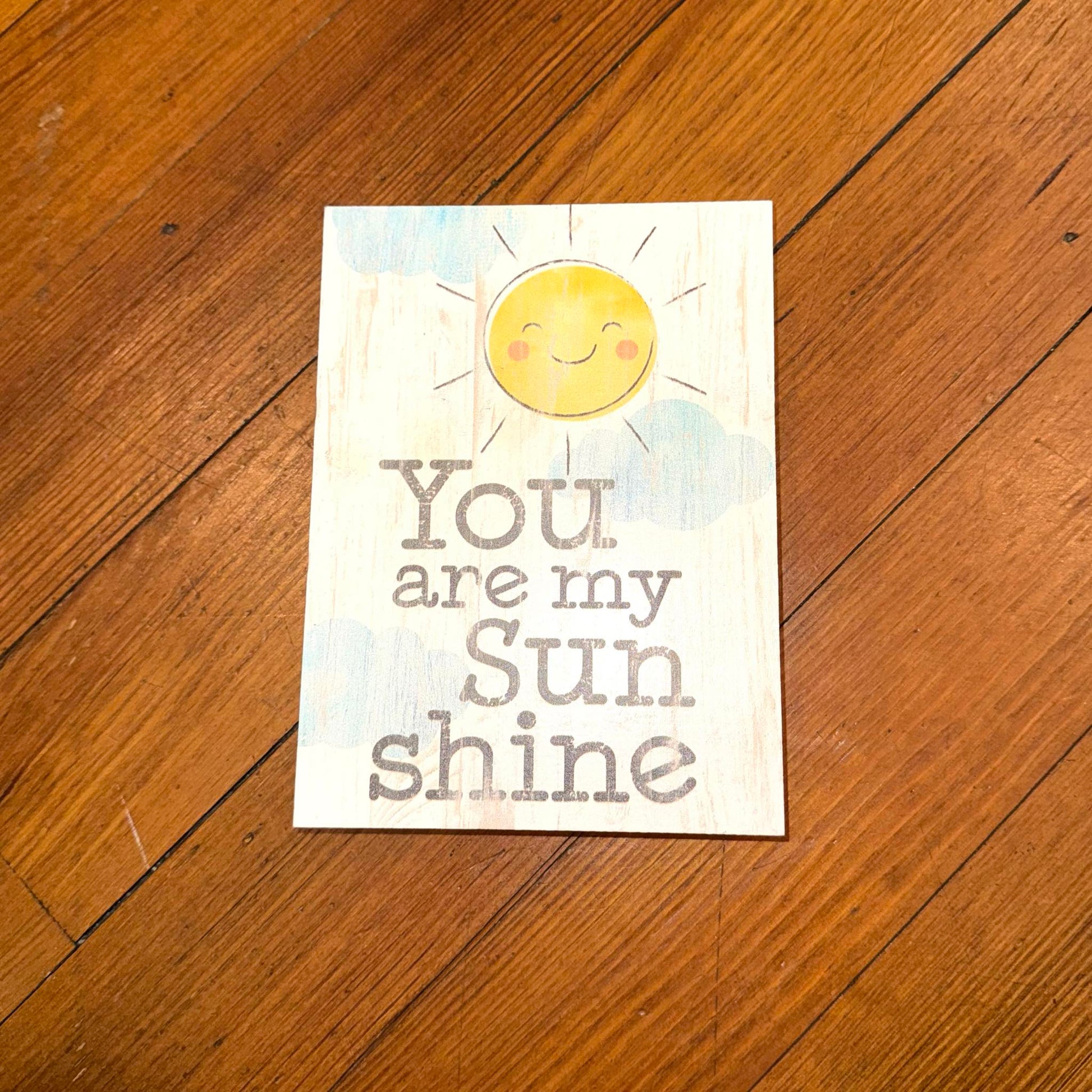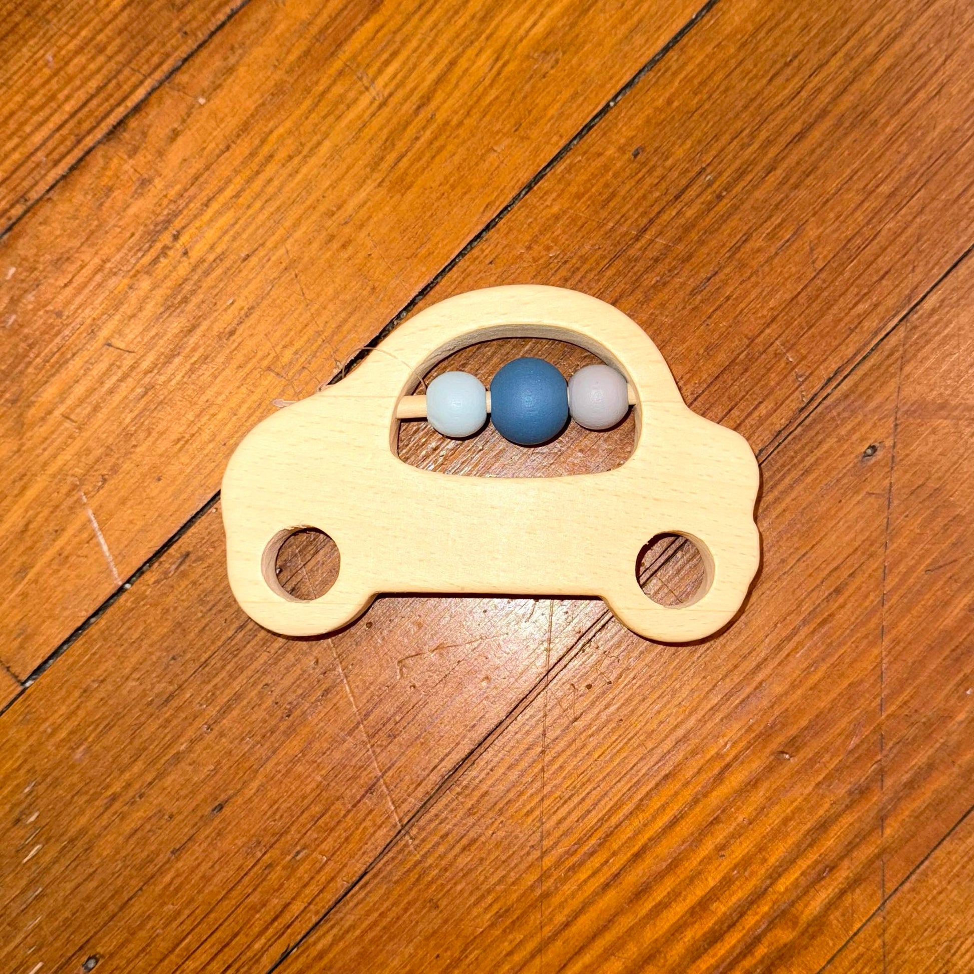 Something practical for his arrival (teeny-tiny socks), something necessary for later (a wooden, car-shaped teether), and a cute little sign block that says "you are my sunshine" -- all these come together and make the perfect gift.