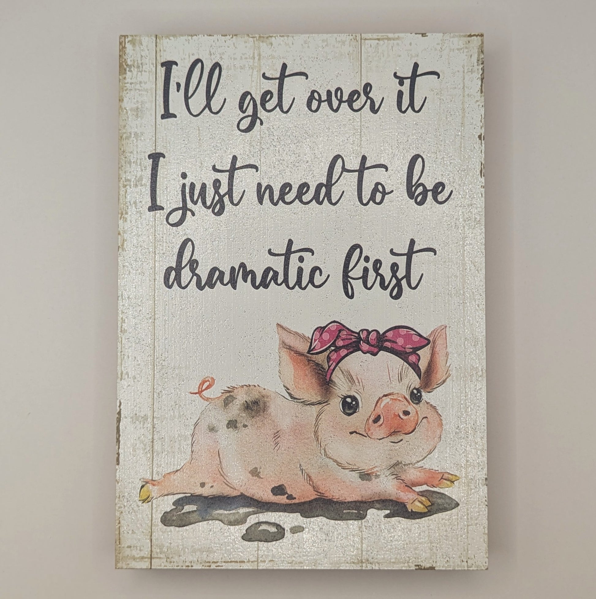 Something practical for her arrival (teeny-tiny socks), something necessary for later (a wooden, chicken-shaped teether), and a cute little sign block that says "I'll get over it, i just need I be dramatic first" -- all these come together and make the perfect gift.