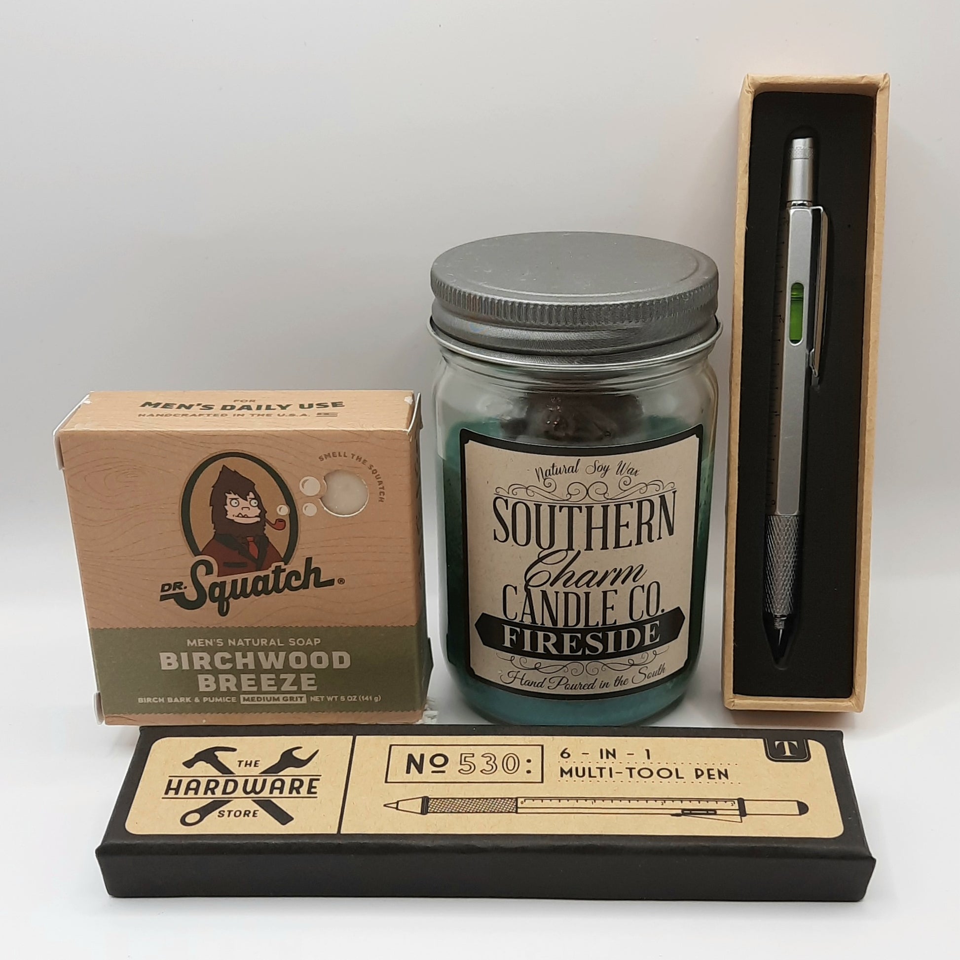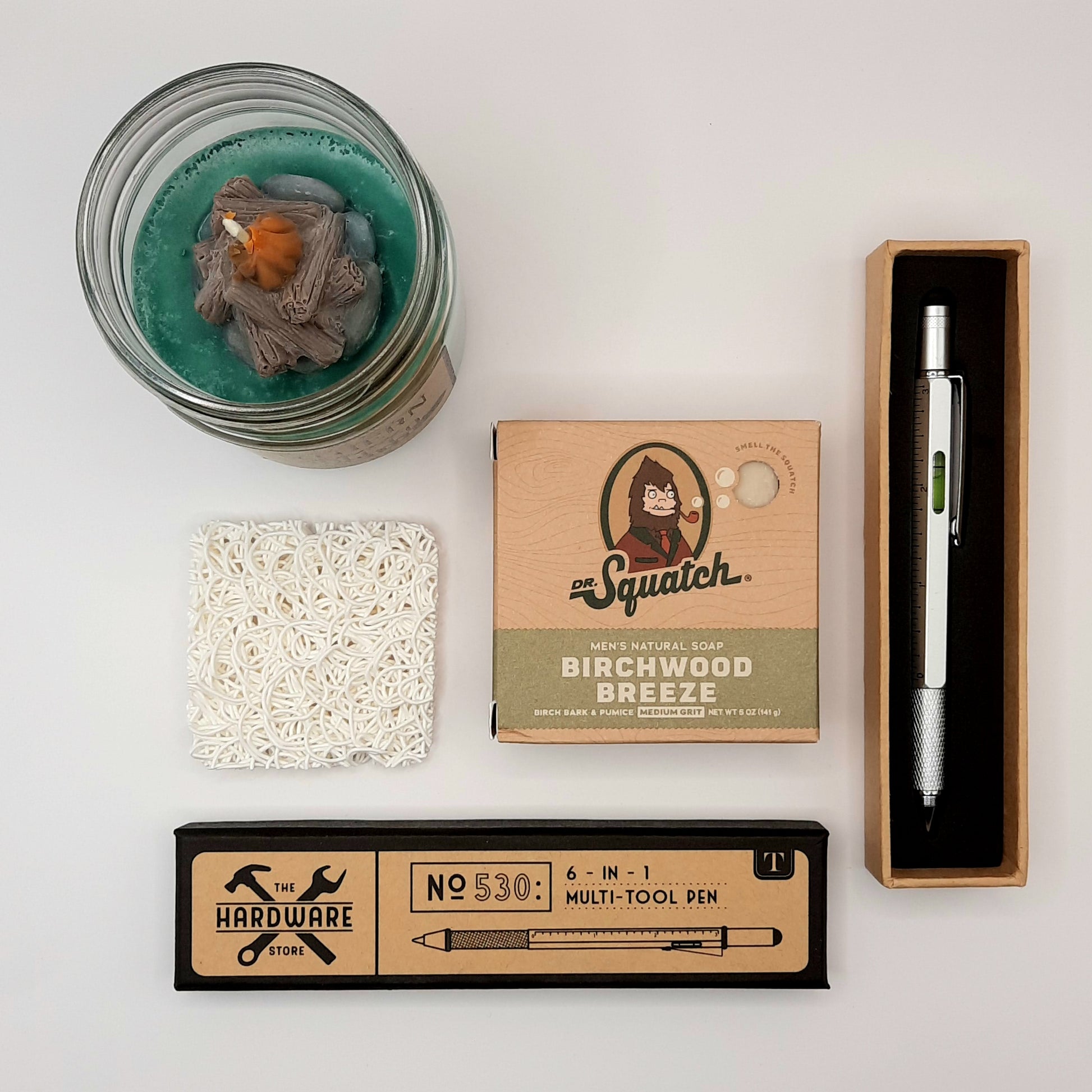 Now let's add something else useful: a deliciously-scented bar soap from Dr. Squatch (with a handy lift to keep it from getting slimy). Birchwood Breeze just might become his new favorite way to get clean!