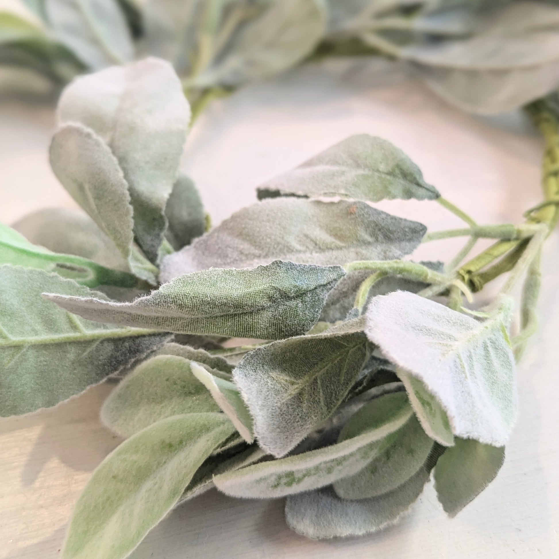This lovely lamb's ear candle ring measures approximately 4.5" on the inside.
