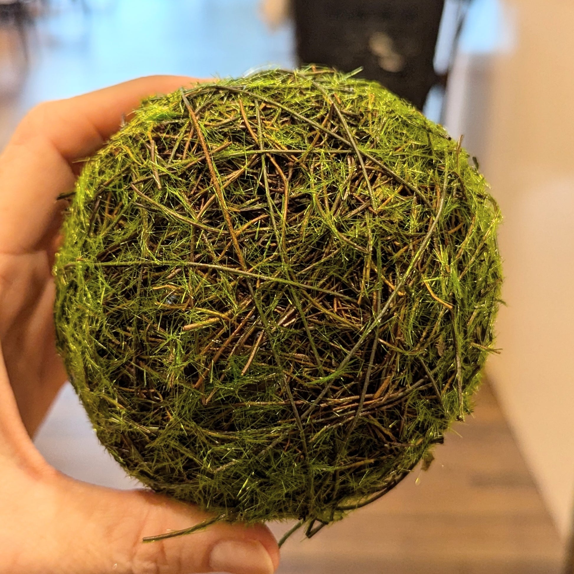 Faux moss and twig decorative orb measures approximately 3.5" in diameter.