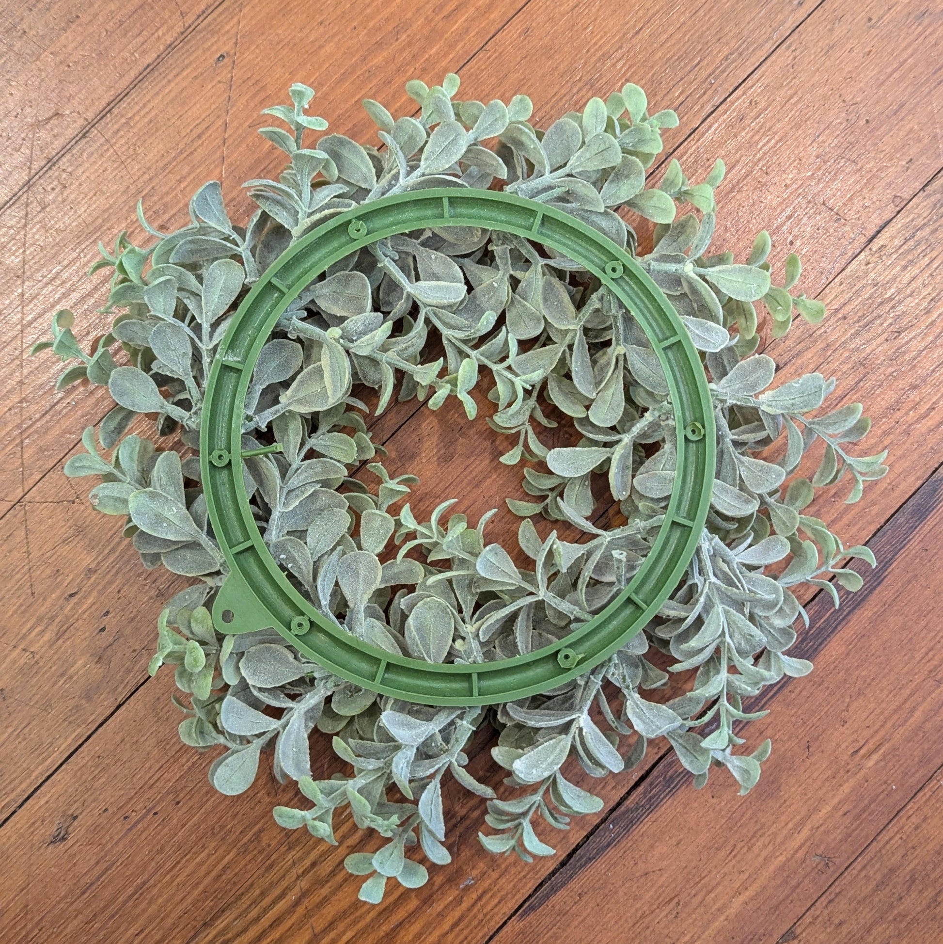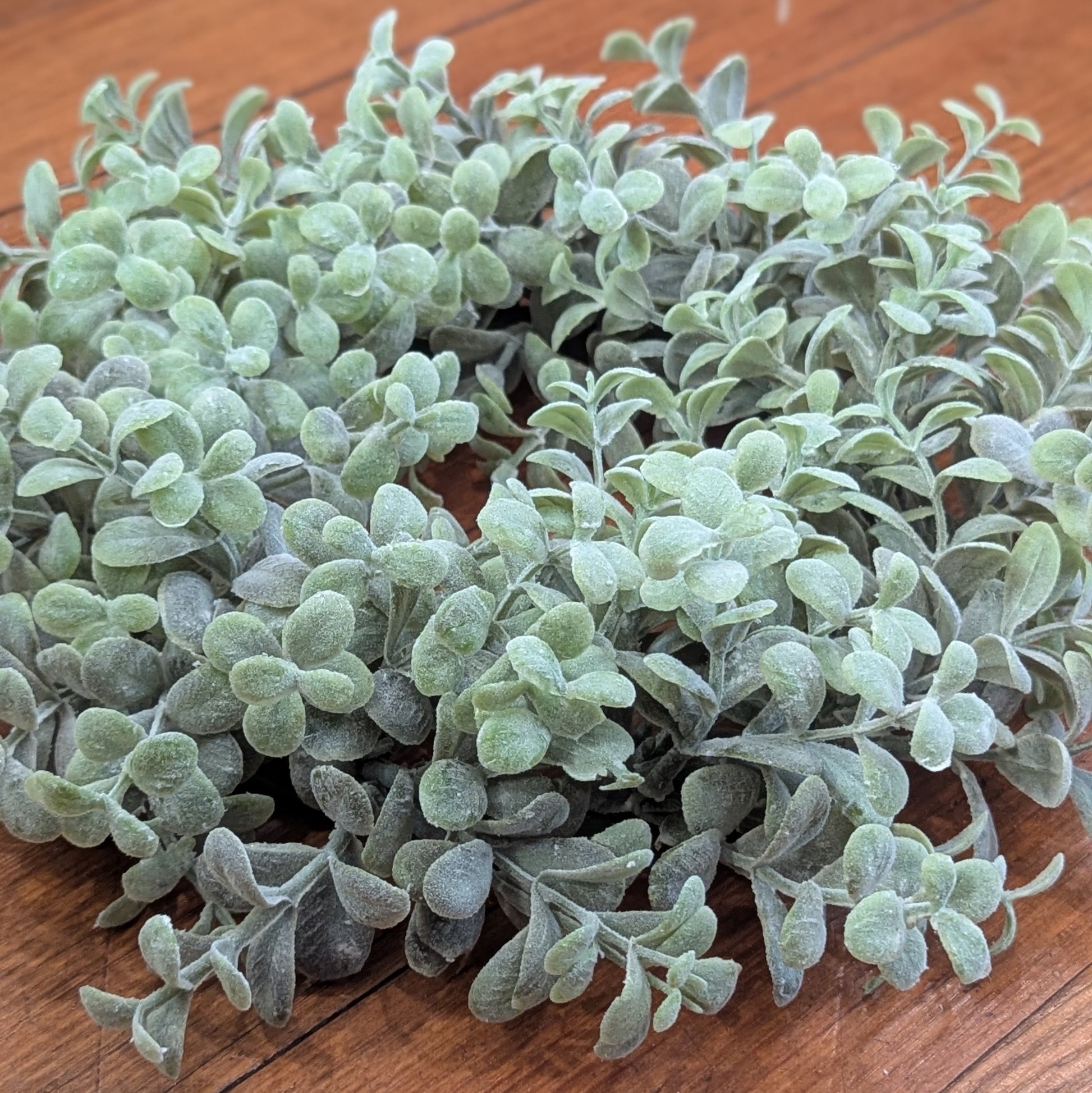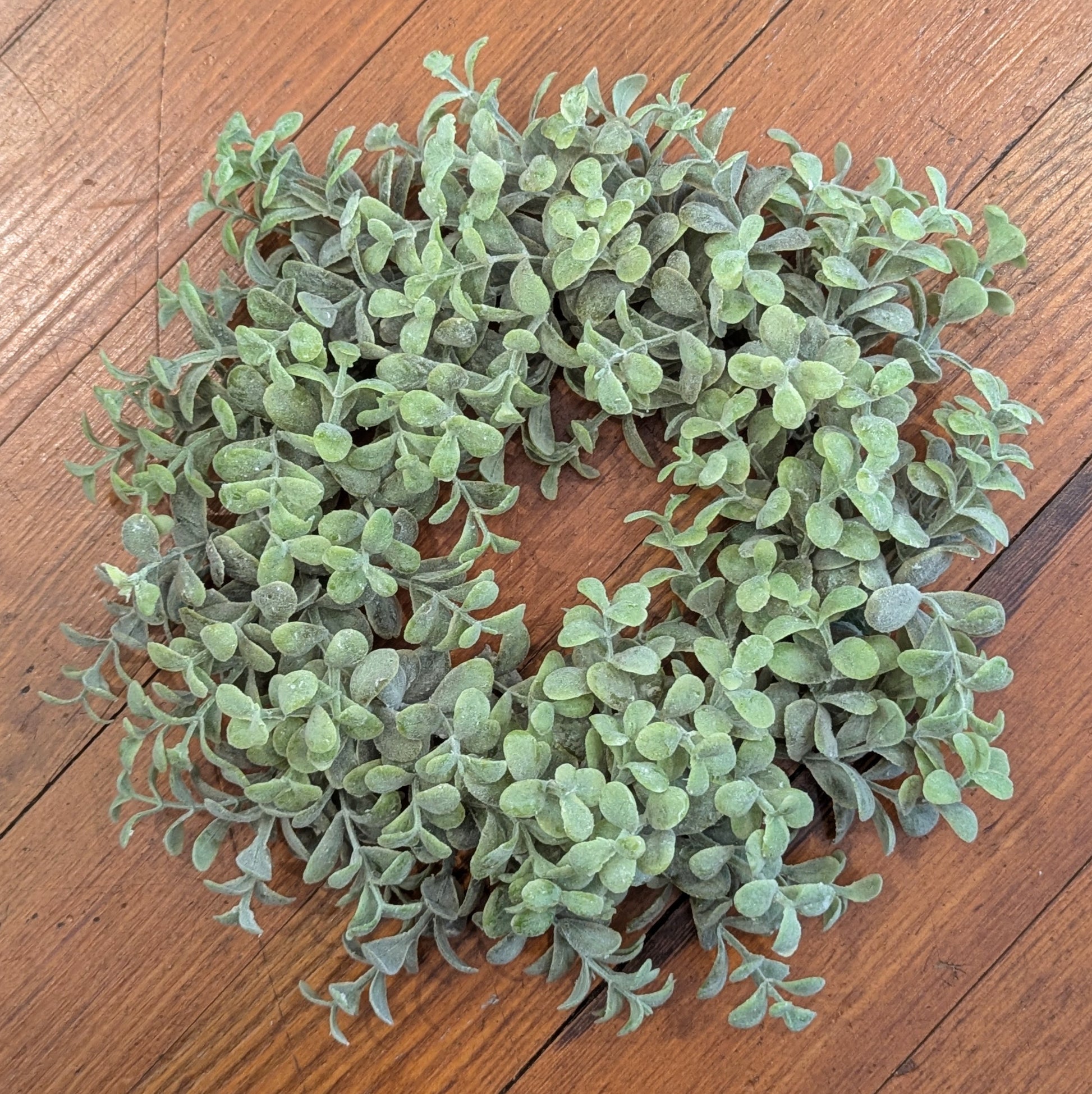 This pebble eucalyptus candle ring measures approximately 6" inside diameter.
