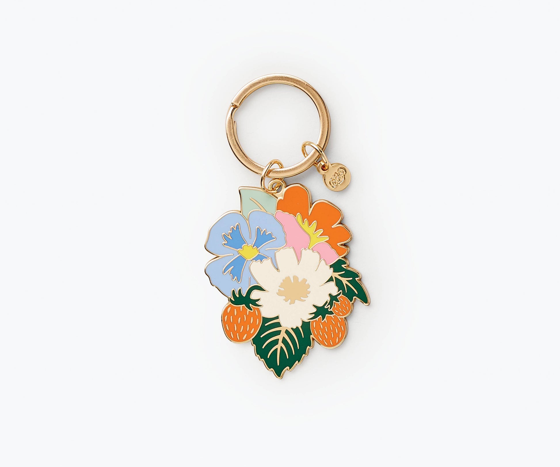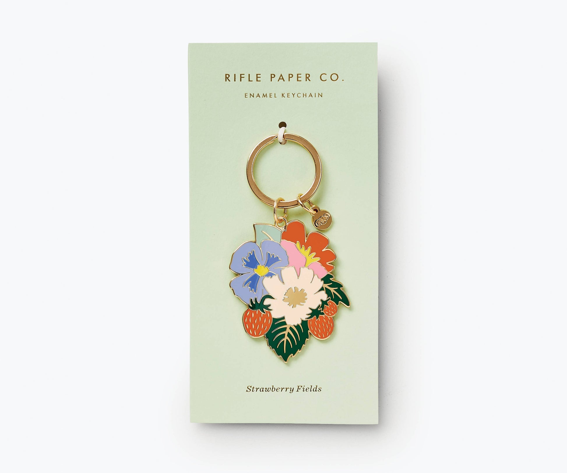 Take sweet blooms and berries to go with our enamel Strawberry Fields keychain, featuring a glossy finish and a Rifle Paper Co. charm.