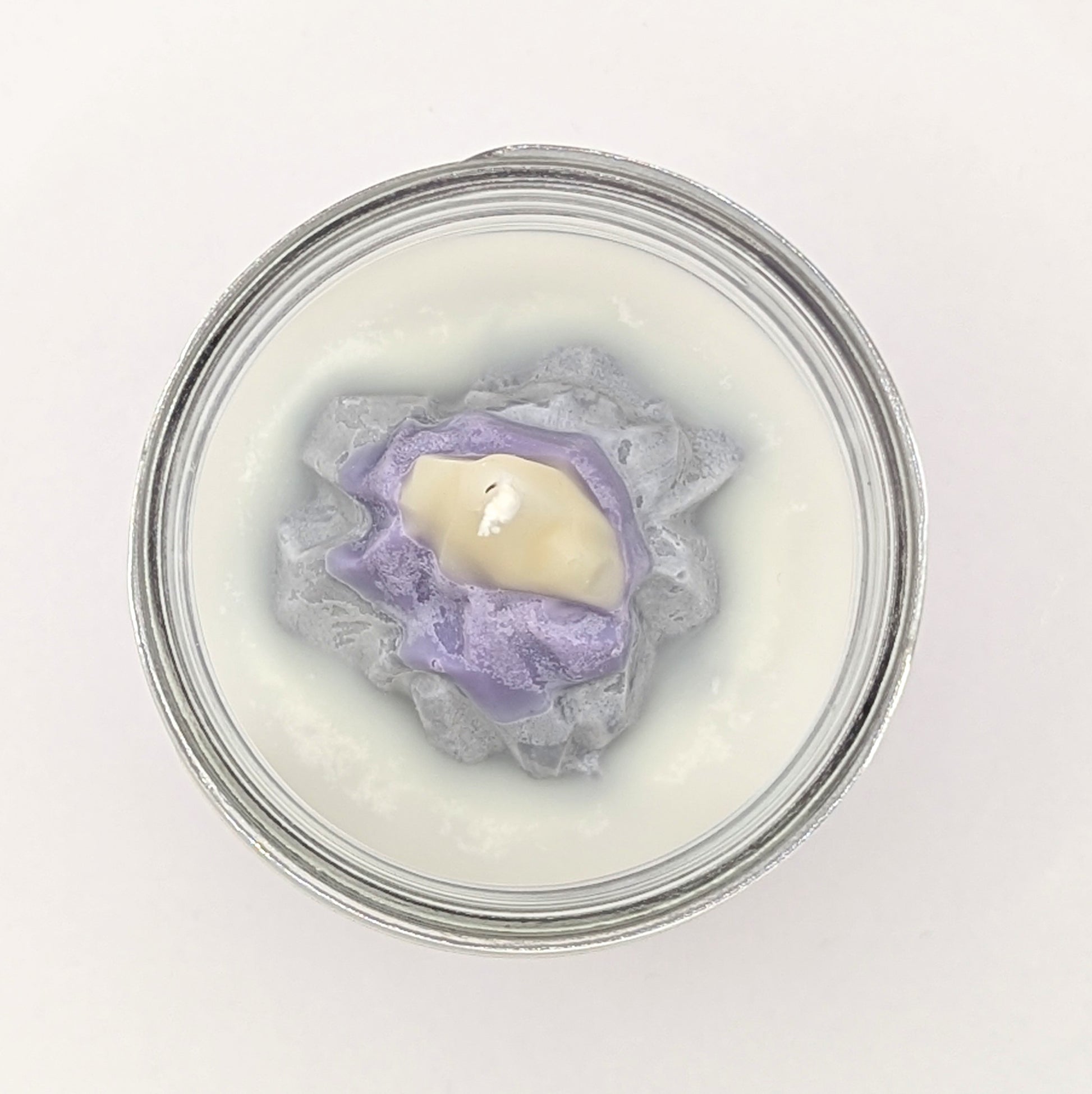 Note: the faux mountain on top this candle is sculpted wax and will melt into the candle as it burns.