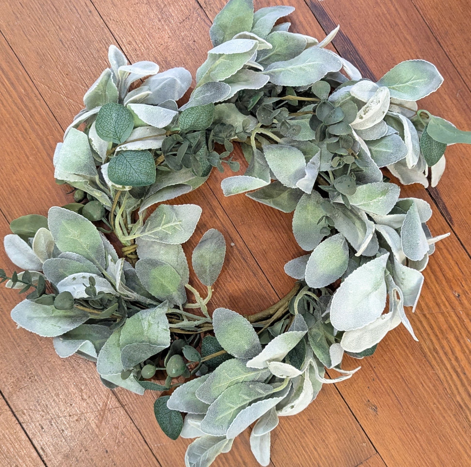 Velvet Lamb's Ear & Eucalyptus Wreath, 6.5"
